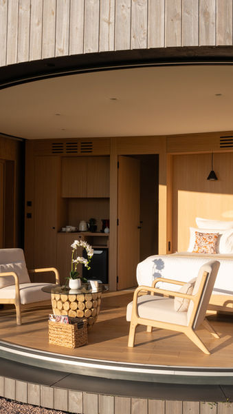 Cette chambre d'hôtel haut de gamme, conçue autour d'une grande baie vitrée s'ouvrant à 180°, vous permettra de vous reconnecter à la nature. Dans ce cocon épuré, véritable éloge à la simplicité, vous vivrez un moment intimiste et privilégié.